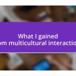 Posted inNetworking Events What I gained from multicultural interactions Key takeaways: Engaging with multicultural interactions enhances empathy and communication skills, allowing for a deeper understanding… 22/09/20259 minutes